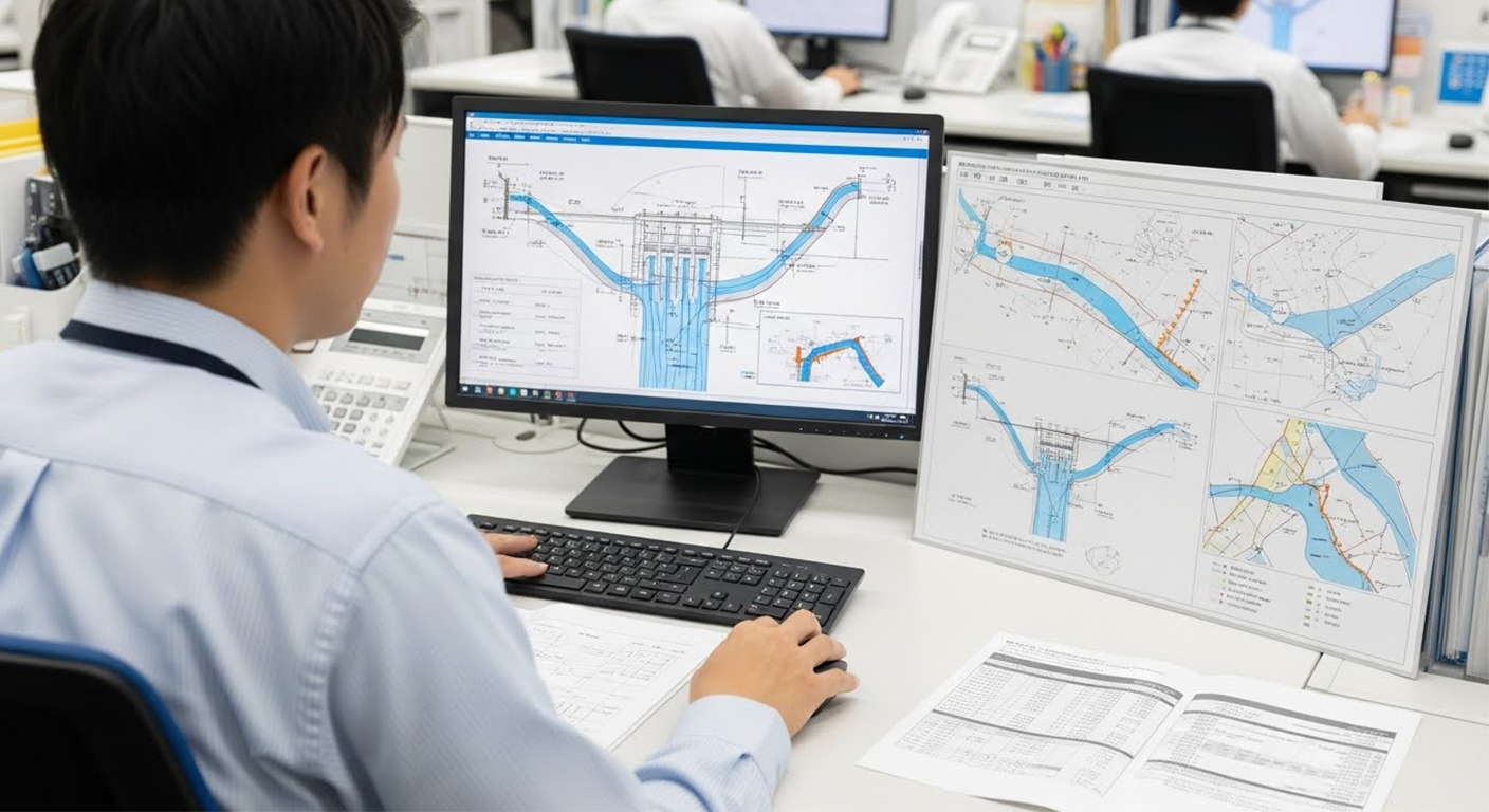 そんなスケールの大きな仕事に携われます。また、チームで業務を進めるため、先輩技術者のサポートを受けながら着実に成長できる環境があります。 公共事業という責任ある分野に関わりながら、専門性を高め、社会に誇れる仕事を続けていけることが、この仕事の大きな魅力です。